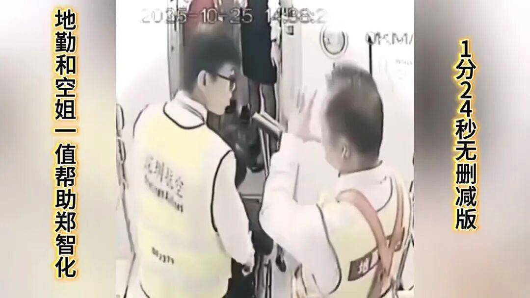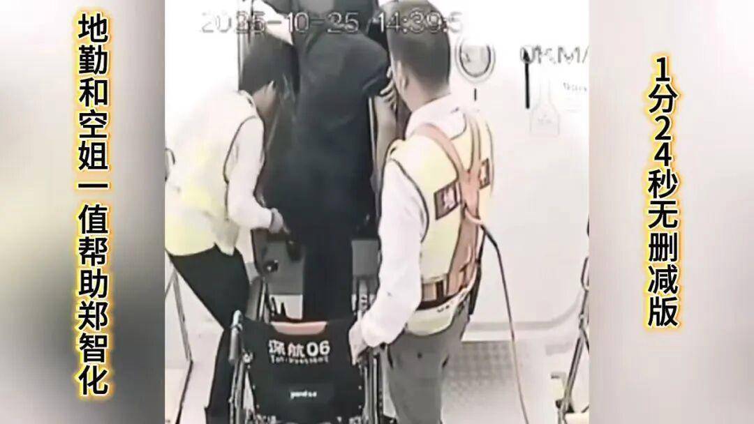 然而,视频里并不存在郑智化描述的“连滚带爬进飞机”,更不存在所有工作人员“冷眼旁观”情况。